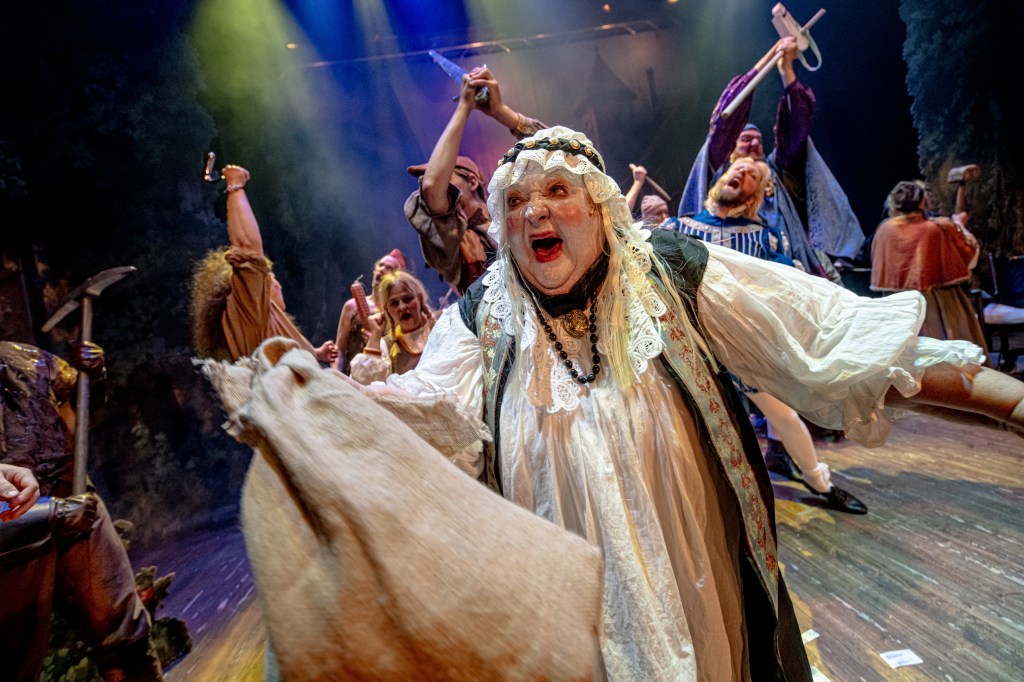 Men utförandet är absolut på topp, det finns knappt någon detalj man vill ändra på. Scenografin domineras av en dramatiskt landskap hämtat från teaterns kulissförråd, kostymerna är välgjorda, alltifrån högreståndsfolkets siden och sammet till pöbelns trasor och lump, sminket precis lagom överdrivet. Koreografin högklassig med bland annat ett par rent enastående dansnummer. Dirigenten Jonas Samuelsson håller den välspelande orkestern i ett drivet tempo med perfekt timing.