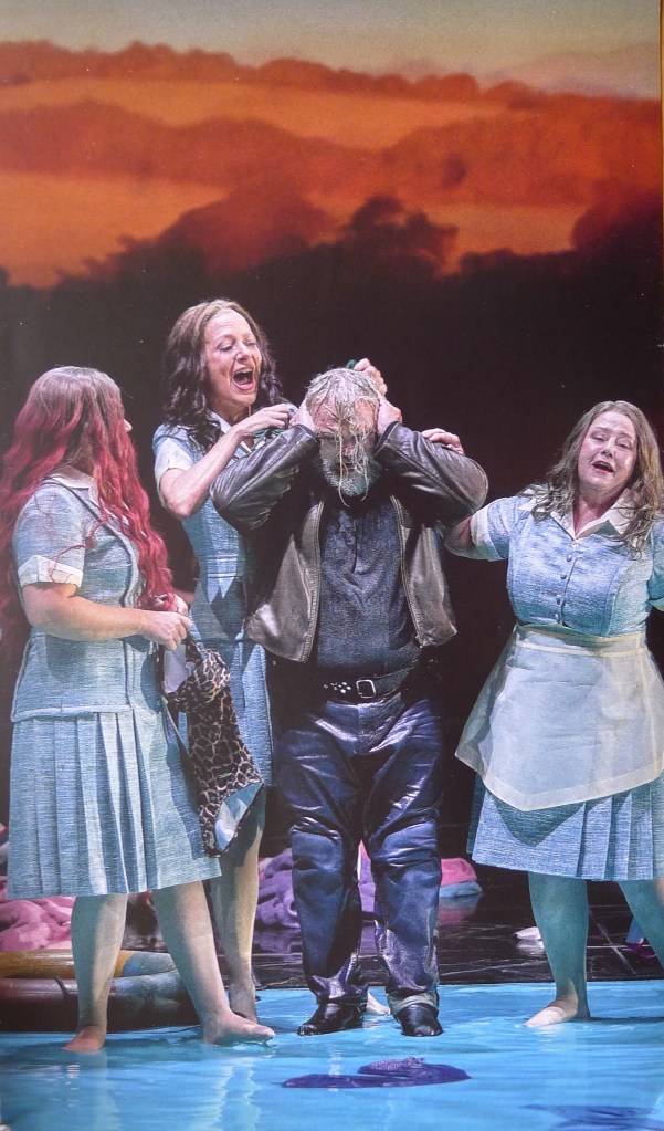 Regissören Valentin Schwarz berättar i sin programförklaring att han vill se Nibelungen-sagan genom barnets ögon. Alltså låter han Rhenguldet, skatten, personifieras av en liten pojke i T-shirt och gul mössa. I stället för att stjäla ett stycke guld låter han dvärgen Alberich kidnappa denna pojke. Och detta resulterar i ett minst sagt underligt koncept som gör berättelsen till ett frågetecken, Det är med detta guld som Alberich smider den magiska ringen och inleder striden om makten som varar genom alla fyra operorna. Men det finns ingen magi i berättelsen och kampen om ringen blir rent förvirrande. De mystiska nibelungarna är i Schwarz version små uniformsklädda flickor som ritar teckningar. Det finns inget Wotan-spjut alls, ett element som spelar en avgörande betydelse under hela Ringcykeln. Jag förstår idén med att fokusera på mänskliga relationer och sätta handlingen i modern tid för att göra dessa operor mer tillgängliga för modern publik. Men att helt ignorera all magi och mystiska referenser innebär att berätta en helt annan historia, eftersom dessa teman är väsentliga för förståelsen och utvecklingen av den ursprungliga avsikten. Så händer det att man ser karaktärerna agera helt annorlunda än vad de sjunger; det finns en total diskrepans mellan deras ord och deras handlingar. Och dessutom: Richard Wagner skrev detta verk vid mogen ålder för en mogen publik. Det är en ren klåfingrighet att försöka förvandla den till en barnsaga.