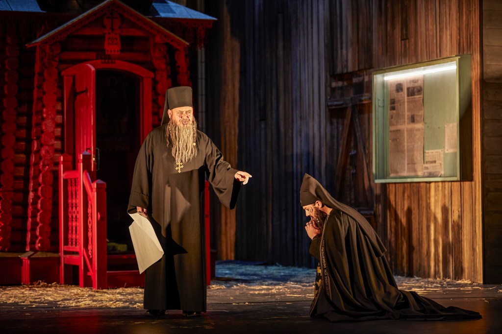 Musorgskij har kallats en musikens Dostojevskij. Han ville i sin musik ge uttryck för den ryska folksjälen utan hänsyn till bortskämda sångardivor eller publikens önskemål. Dirigenten Kent Nagano låter det kärva och egensinniga tonspråket komma fullt ut i sin rätt med tung, distinkt klang och mörka färger i den storartade orkestern och han visar att han perfekt kan handskas med det invecklade samspelet mellan orkester, solister och mängder av körsångare – den ordinarie kören är förstärkt med en extrakör och en barn- och ungdomskör – och han håller hela föreställningen i ett intensivt tempo.