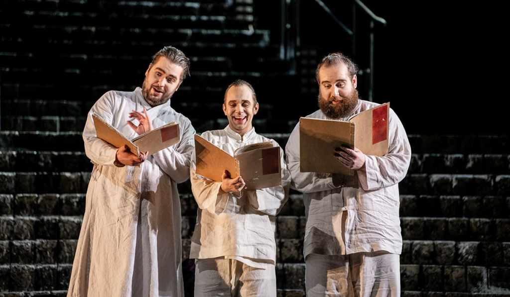Ett elegant grepp tar Sofia Jupither i framställningen av de tre ämbetsmännen Ping, Pang och Pong, gestaltade av Johnah Spungin, Per Lindström och Conny Thimander. Hon plockar fram människorna bakom den tjattrande trion, tar av dem mantlarna och låter dem i bara underkläderna berätta om sina drömmar – stereotyperna förvandlas till riktiga människor. Även de andra solisterna förtjänar lovord för sina prestationer.