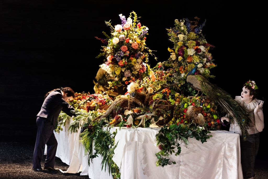 Jag kallade scenografin överdådig. Den är mer än så, det är tavlor med så många detaljer att de nästan är omöjliga att överblicka, särskilt i öppningsscenen. Än mer spektakulär är den bild där hela scenen är fylld av levande ljus och ändå lyckas härbärgera aktörerna.