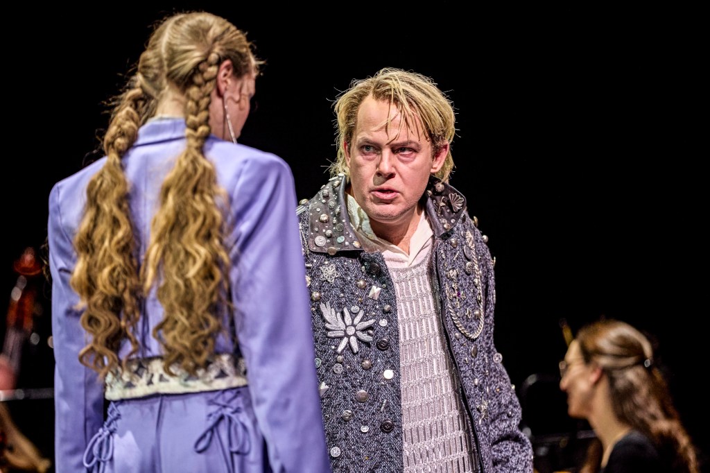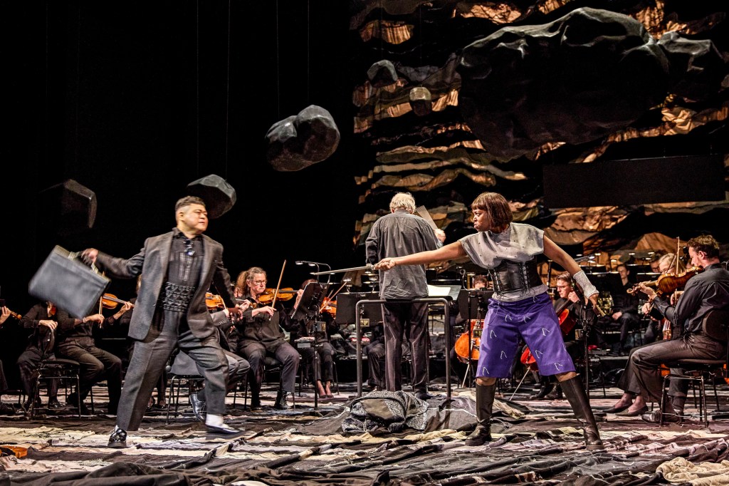Verkets intrig är komplicerad, på gränsen till obegriplig, liksom verkets hela struktur. Men regissören Birgit Kajtna-Wönig och dirigenten Adam Fischer rundar problemen genom att göra det hela till en blandning av opera och konsertant föreställning med orkestern mitt på scenen med sångarna framför. Ingen rekvisita, enkla, tidlösa kostymer och scenografin reducerad till en komplicerad fond. Recitativen, som ackompanjeras av hammarklaver, förstärks med texttavlor med expressiv typografi.